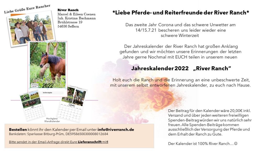 In unmittelbarer Nähe von Bitburg liegt unsere River Ranch. „Raus aus der Stadt – rein in die Landluft“ war unser Motto, welches wir bis heute mit Herzblut leben und mit euch Teilen möchten! Wer dem Alltag entfliehen, Sorgen hinter sich lassen und entspannen möchte, ist bei uns in der schönen Süd-Eifel am absolut weltbesten Ort.
