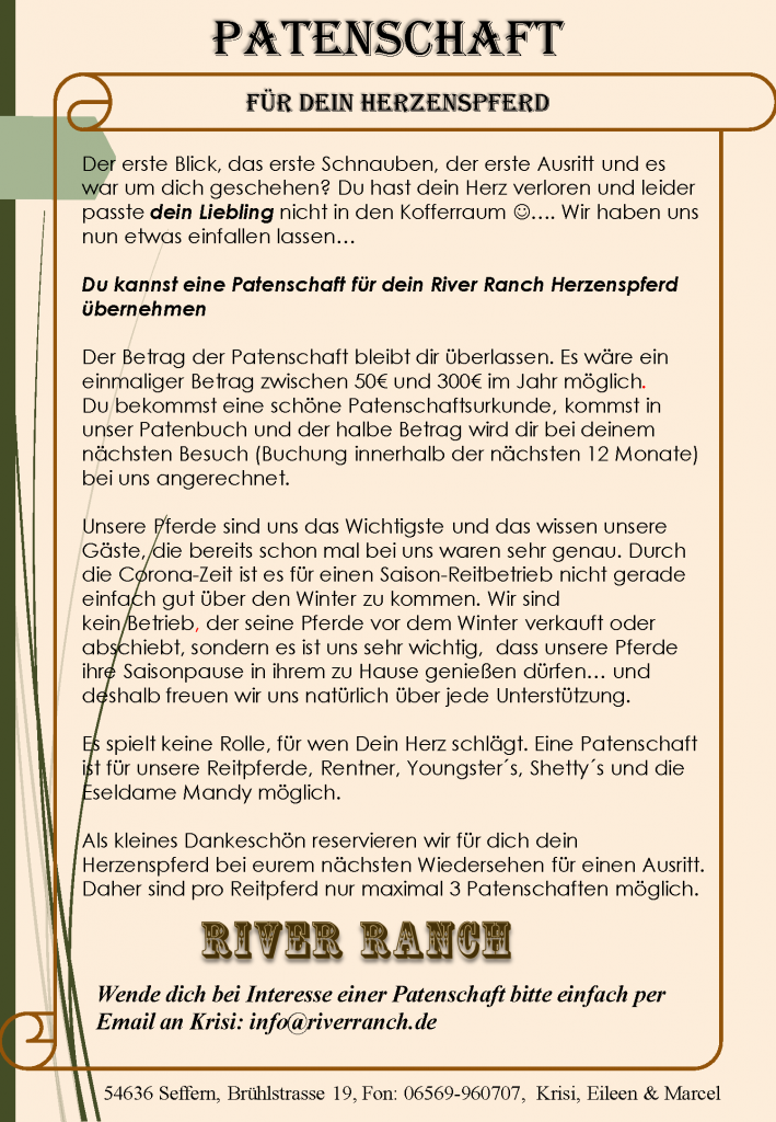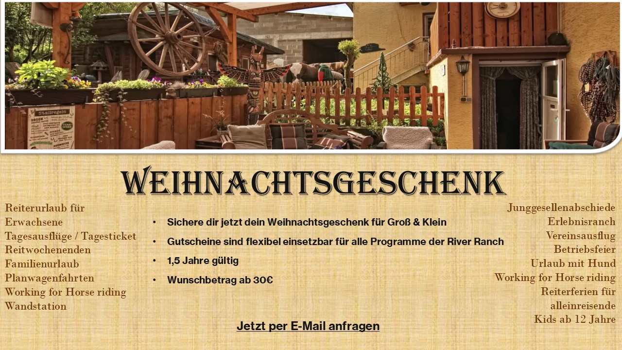 In unmittelbarer Nähe von Bitburg liegt unsere River Ranch. „Raus aus der Stadt – rein in die Landluft“ war unser Motto, welches wir bis heute mit Herzblut leben und mit euch Teilen möchten! Wer dem Alltag entfliehen, Sorgen hinter sich lassen und entspannen möchte, ist bei uns in der schönen Süd-Eifel am absolut weltbesten Ort.